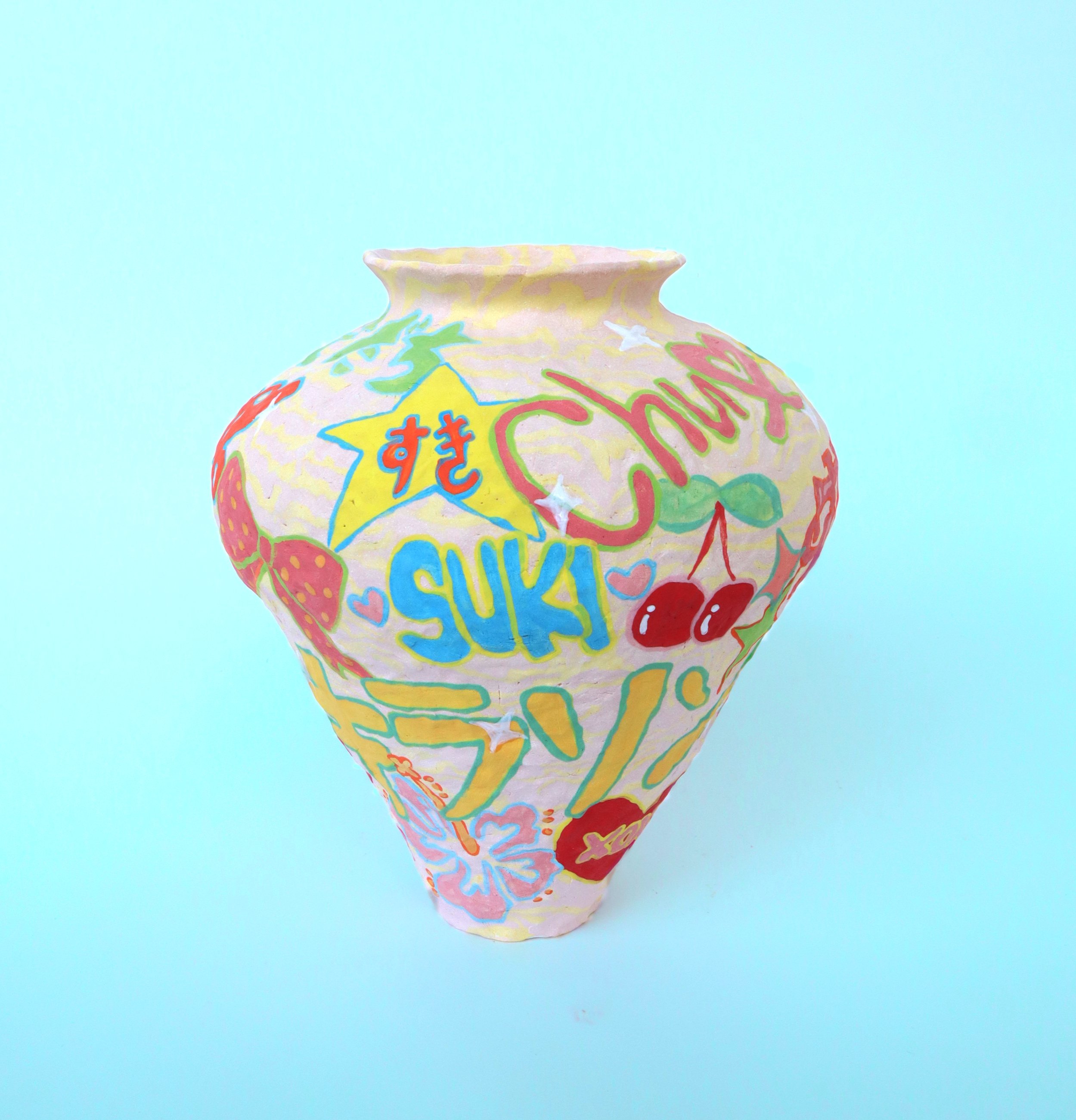 Vase Saikou! Otome Party Animal Pink and Yellow Vase Multicolour Checkered Lamp Multicolour Candelabra Bits and Pieces Collage Wall Tile Untitled Deco Pot